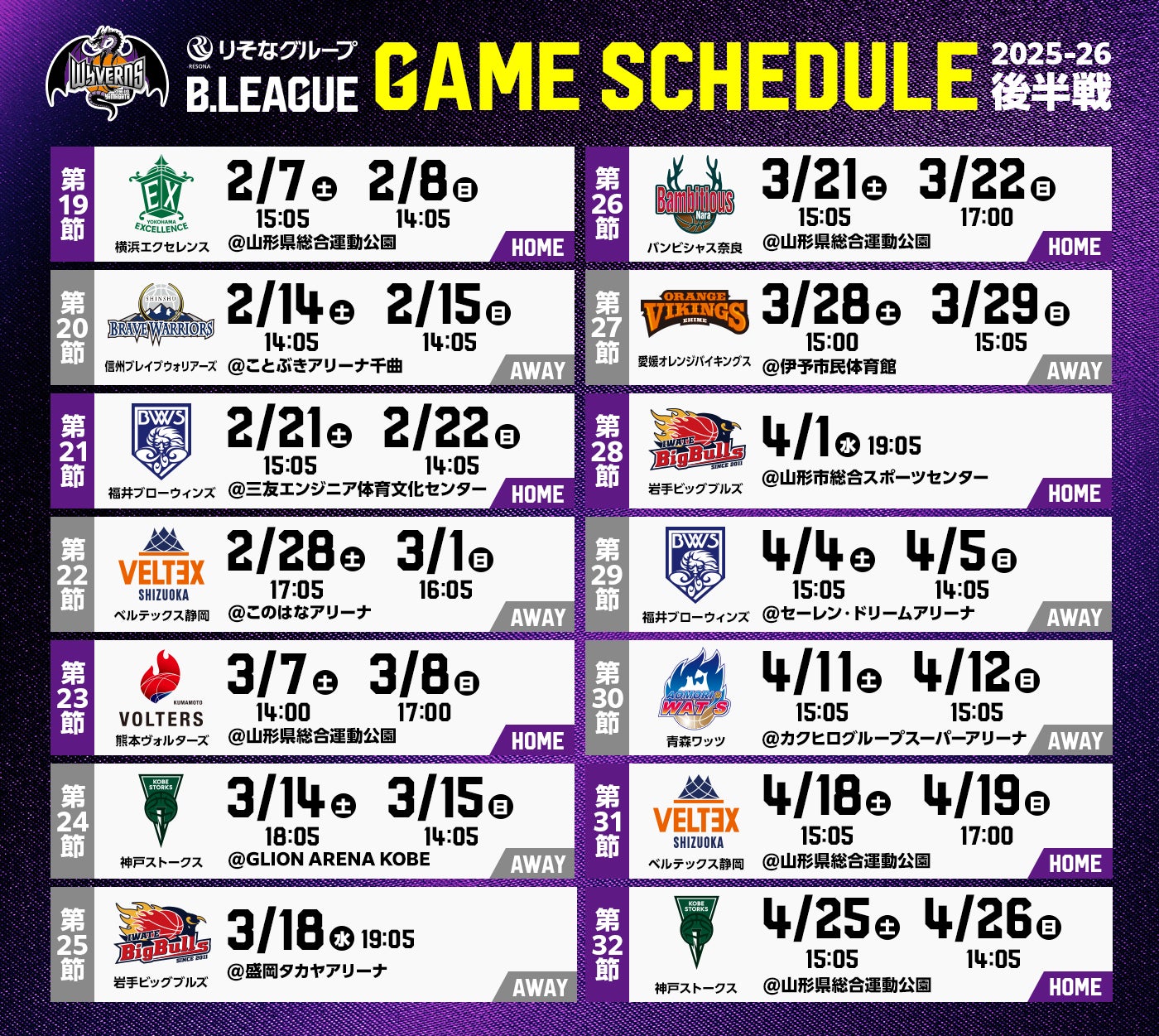 【1/23更新】HOMEGAME 第17節1/24(土)25(日) 岩手ビックブルズ戦