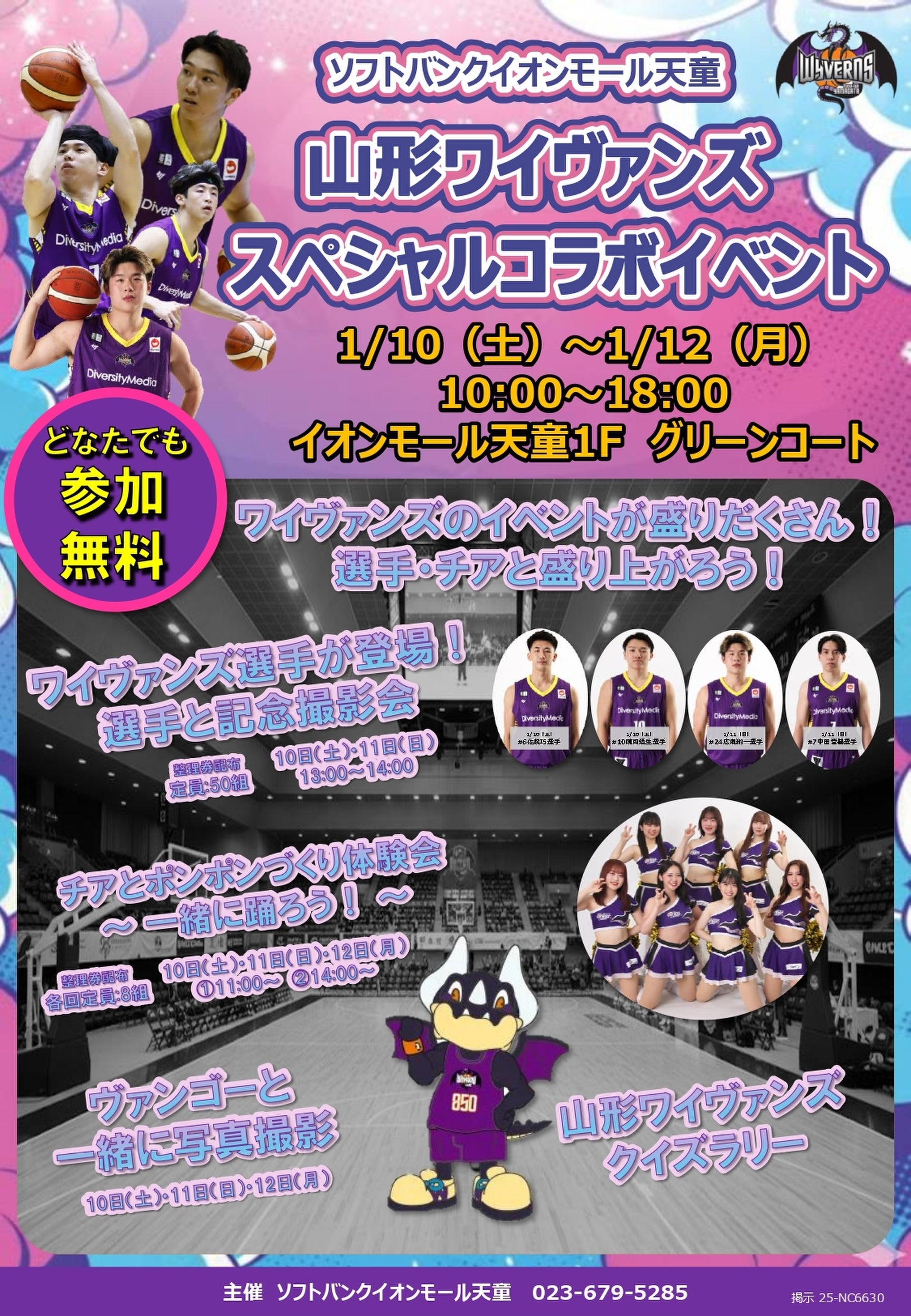2026年1月10日(土)~1月12日(日)にイオンモール天童 専門店街1F グリーンコートにて「ソフトバンクイオンモール天童×山形ワイヴァンズ 選手&チアリーダー スペシャルイベント」に参加いたします!