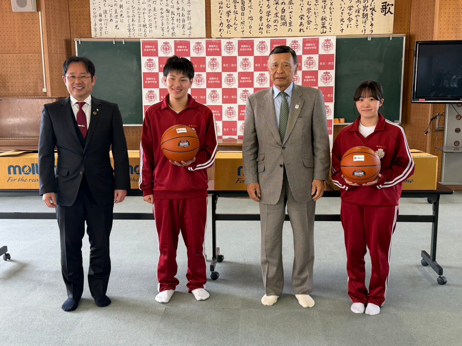 南陽市内の中学校3校へバスケットボールの寄贈について